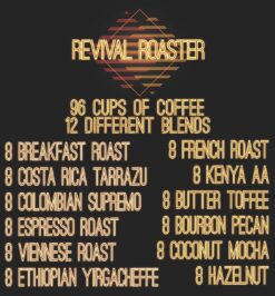 - 96 cups in 12 Unique Blends of Premium Roasted Coffee