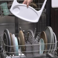 The removable tray is dishwasher safe to make mealtimes a breeze. Just wipe the base and foam insert clean with a damp cloth and mild soap.