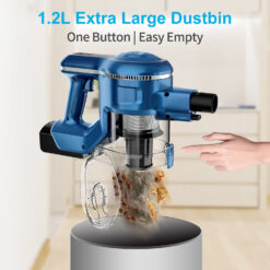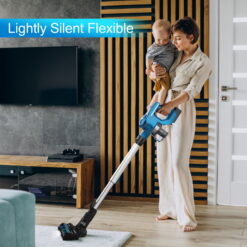 - 5 Stages High-Efficiency Filtration System – The stick vacuum is equipped with 5 stages of a complete sealing filtration system – HEPA, stainless steel strainer, and double cyclone separation, locks in small particles without leakage while expels purified fresher air for your family