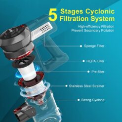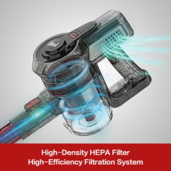 - Fully sealed filtration system separates clean air and dust efficiently without leakage, Plus high-density HEPA which removes up to 99.99% of microscopic dust particles as small as 0.1 microns, this vacuum cleaner makes the exhaust air cleaner, can effectively prevent secondary pollution.
