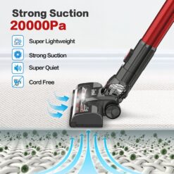 INSE Cordless Vacuum Cleaner, 6-in-1 Rechargeable Stick Vacuum, 20kPa Powerful Lightweight Vacuum Cleaner up to 45 Mins Runtime, for Home Hard Floor Carpet Pet Hair, Red