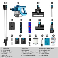 - 10 Combinations – This Vacuum Cleaner comes with metal tube, long crevice, 2-in-1 brush, motorized brush, mini motorized brush, stiff roller brush and soft roller brush, which can be assembled into 10 Combinations. Meet all your daily clea-ning needs.