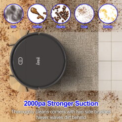 - INCREDIBLE SUCTION: Robot vacuum powered by a strong digital motor provides 2200pa strong suction power. INSE E3 PLUS a impressive job on picking up dirt, small particles, pet hair and fur.