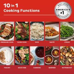 - 10-IN-1 FUNCTIONALITY: Pressure cooker, slow cooker, rice cooker, steamer, sauté pan, yogurt maker, warmer, canning pot, sous vide, and NutriBoost