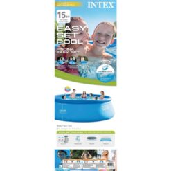 This complete Intex 15 ft. x 48 in. Easy Set Pool will give your friends and family infinite hours of refreshing, fun activity and enjoyment. Get everything you need in 1-package with this Easy Set Pool Complete Kit, including a ladder, ground cloth, cover and 1,000 GPH pump for a pristine pool all season. Easy Set pools are much simpler and easier to set up and disassemble than any rigid steel walled pool. Bring the beach to your backyard with the Easy Set Pool Complete Kit from Intex. You could be ready for cool water in as little as 15-minutes. Please note: Proper installation of any above ground pool requires an area, sufficiently larger than the desired pool, to be leveled flat. Uneven ground, hills or holes must be leveled before pool assembly begins. If severely uneven ground prohibits level ground, proper installation will not be possible.