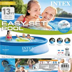 INTEX 28141EH Easy Set Inflatable Swimming Pool Set: 13ft x 33in – Includes 530 GPH Cartridge Filter Pump – Puncture-Resistant Material – 1926 Gallon Capacity – 26in Water Depth