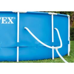 - Metal frame pool with soft walls that are made of Intex’s tough PVC, resistant to damage from abrasion, impact, and sunlight
