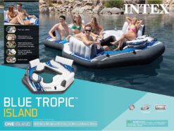 Intex Blue Tropic Inflatable Lake or Swimming Pool Island Water Floating Lounger Raft with Backrests, Built-in Cooler, and 4 Cupholders
