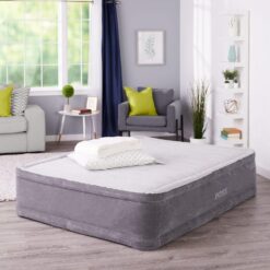 The Comfort Plush is raised 18 inches from the floor, making it far taller than most inflatable mattresses. And at 60 by 18 by 80 inches (W x H x L), the mattress is an official queen size, making it a good fit for fitted sheets. The Comfort Plush Queen bed–which offers a capacity of 600 pounds–is a terrific choice whether you’re sleeping at the in-law’s overcrowded house or setting up a guest bed in the basement. The mattress comes with an AC power cord and a duffel bag (for storage).