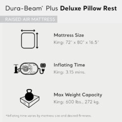 - FIRM AIR MATTRESS: King air mattress with Fiber-Tech interior construction for firmness and features a built-in pillow to provide support