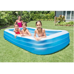Cool down and have some fun in the sun with the Intex Inflatable Swim Center Family Lounge Pool. It measures 120″ x 72″ x 22″, making it large enough for the entire family to enjoy, plus plenty of depth for splashing and fun. The comfortable, wide sidewalls allow for lounging to make the summer experience unforgettable. The Intex Swim Center family lounge pool has three air chambers and a double valve intake to allow it to be easily inflated. It also has a convenient drain plug to get rid of the water once the fun is done.