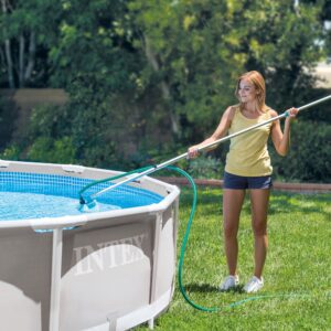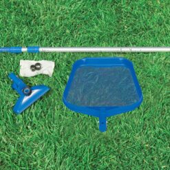 - Maintenance kit keeps your pool clean and safe with helpful tools like a vacuum head, surface skimmer, and 94-inch telescoping aluminum pole