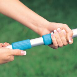 - 94-inch telescoping aluminum pole is compatible with both accessories and is great for 16-foot and smaller diameter pools