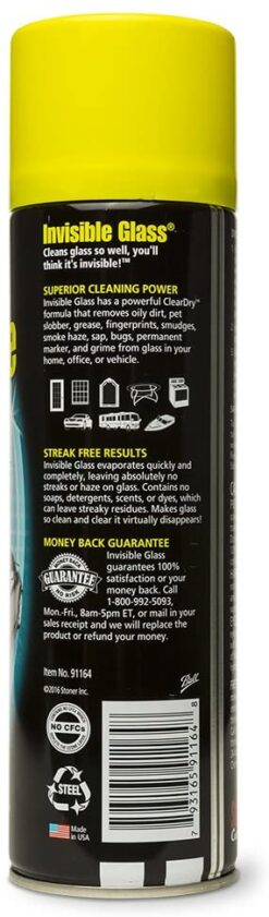 Invisible Glass Premium Glass Cleaner 19-Ounce Can – Case of 3. Tired of glass cleaners that don’t really clean? Inferior cleaners leave streaks and residue or simply smear the dirt around – but Invisible Glass Cleaner doesn’t. Our ammonia free cleaner with fine mist spray clings tight to glass, providing a streak-free shine with no residue, no lingering aroma, and no mess. You put a lot of pride into making sure your home or car looks great, so it makes sense to use a premium glass cleaner that’s engineered to perform at the very best.