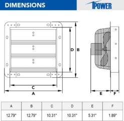 iPower Shutter Exhaust Fan is perfect for removing excess heat, moisture, dust and odors from virtually any residential or commercial space. Applications include: workshops, welding rooms, factories, warehouses, barns, and greenhouses. This wall mounted exhaust fan includes automatic gravity shutters that open and close in conjunction with the operation of the fan. The completely enclosed motor is thermally protected and permanently lubricated.This fan comes fully assembled and ready to install out of the box.