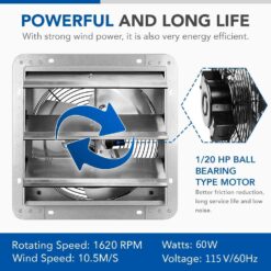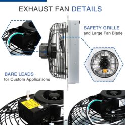 iPower 12 Inch Shutter Exhaust Fan is perfect for removing excess heat, moisture, dust and odors from virtually any residential or commercial space. Applications include: workshops, welding rooms, factories, warehouses, barns, and greenhouses.This wall mounted exhaust fan includes automatic gravity shutters that open and close in conjunction with the operation of the fan. The completely enclosed motor is thermally protected and permanently lubricated.This fan comes fully assembled and ready to install out of the box.
