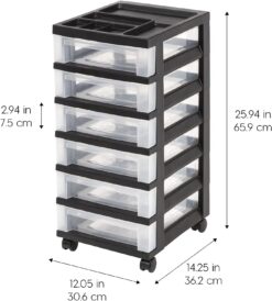 IRIS OHYAMA USA Craft Organizers and Storage, Rolling Storage Cart for Classroom Supplies, Storage Organizer for Art Supplies, Drawer Top Organizer for Small Parts, 6 Drawers, Black