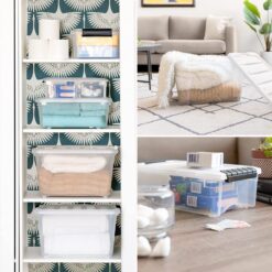 - PULL HANDLE – The built-in pull handle on bottom of the medium plastic container makes it easy to pull the medium plastic box container bin from any high shelves without any clawing or straining to get a grip on the bins.