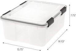 - WEATHERTIGHT – IRIS USA WeatherPro Heavy Duty Plastic Storage Bin Tote Organizing Container with Durable Lid and Seal and Secure Latching Buckles has high quality heavy duty seals in the lids to preserve and protect valuables and important documents. The heavy duty storage bin creates a vacuum-like environment within the storage container tote blocking out moisture, dust, and insects.