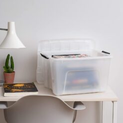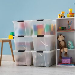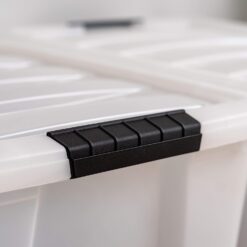 - STYLISH AND DISCREET – The pearl design of our plastic storage bin tote with lid creates privacy. You as a user know exactly what is inside, but also hides it from other people. Also, even if you don’t have space to hide the plastic storage totes in garages, closets and cupboards, no worries. With the new design you can put it in the living room or bedroom, and it will still look stylish.