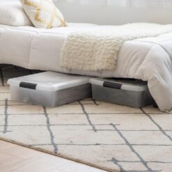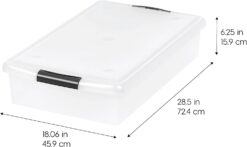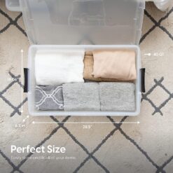 IRIS USA 40 Qt. Under Bed Plastic Storage Container with Secure Lids and Durable Buckles, 4-Pack – Pearl, Stackable Nestable Multi-Purpose Organizer for Clothes Shoes Duvets Bedding, Large