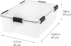 - WEATHERTIGHT – IRIS USA WeatherPro Heavy Duty Plastic Storage Bin Tote Organizing Container with Durable Lid and Seal and Secure Latching Buckles has high quality heavy duty seals in the lids to preserve and protect valuables and important documents. The heavy duty storage bin creates a vacuum-like environment within the storage container tote blocking out moisture, dust, and insects.