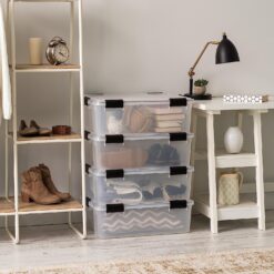 IRIS USA 41 Quart WEATHERPRO Plastic Storage Box with Durable Lid and Seal and Secure Latching Buckles, Weathertight, Clear with Black Buckles, 4 Pack