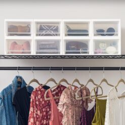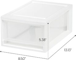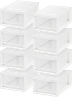IRIS USA 6 Quart Stackable Storage Drawer, Plastic Drawer Organizer with Clear Doors for Pantry, Closet, Desk, Kitchen, Under-Sink, Home and Office De-Clutter, Shoes and Crafts – White, 8 Pack