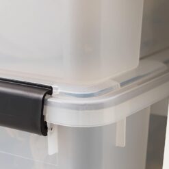 IRIS USA 62.8 Quart WEATHERPRO Plastic Storage Box with Durable Lid and Seal and Secure Latching Buckles, Weathertight, Clear with Black Buckles, 2 Pack