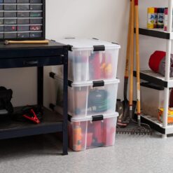 - MADE IN USA with GLOBAL MATERIALS – IRIS USA’s heavy duty plastic Buckled Lidded Storage Bin Tote is a perfect storage organizer that can fit all your items safely with durable, heavy duty polypropylene material manufactured in the USA. Also check out our full selection for maximum storage and organization: 16, 26.5, 30, 44, 60, and 70 Quart.