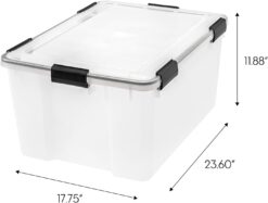 - WEATHERTIGHT – IRIS USA WeatherPro Heavy Duty Plastic Storage Bin Tote Organizing Container with Durable Lid and Seal and Secure Latching Buckles has high quality heavy duty seals in the lids to preserve and protect valuables and important documents. The heavy duty storage bin creates a vacuum-like environment within the storage container tote blocking out moisture, dust, and insects.