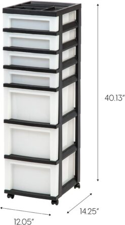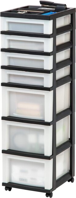 IRIS USA 7-Drawer Storage Cart with Organizer Top, Black