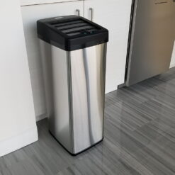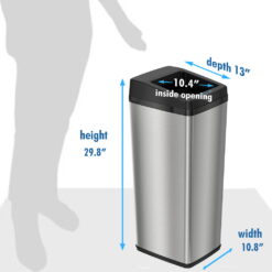 This touchless trash can wants to be placed in tight situations. Fully equipped with touch-free infrared sensor technology, the iTouchless 14 Gallon Stainless Steel Sensor Trash Can has a sleek design and a space saving retracting lid that is perfect for all of your trash or recycling needs. Needing only 6-8 inches of clearance space above and in front of the sensor, this model is great for pull-out drawers, cabinets or as a standalone appliance. Specially designed to fit a week’s worth of trash or recyclables for a family of four. Key features include an elegant stainless steel body, a space-saving durable ABS plastic lid, an enhanced next-gen infrared touchless sensor, natural carbon odor filter deodorization technology, and a trash bag retainer ring. Product Dimensions: 13 L x 10.75 W x 29.75 H inches
