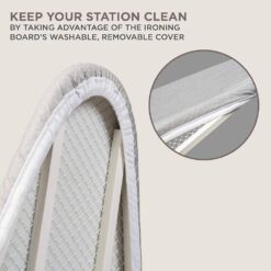 - Keep your station clean by taking advantage of the ironing board’s washable, removable cover.