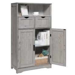IWELL Large Storage Cabinet, Bathroom Storage Cabinet with 2 Drawers & 2 Shelves, Floor Cabinet for Living Room, Bedroom, Home Office, Grey