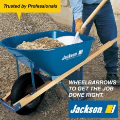 Jackson wheelbarrows are the professionals’ choice for superior quality, value and performance. Heavy duty steel trays, professional grade steel undercarriages and strong hardwood handles add up to the toughest, most dependable wheelbarrows on the jobsite. Don’t compromise, choose a Jackson wheelbarrow and get the job done.