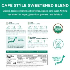 Jade Leaf Matcha Organic Cafe Style Sweetened Matcha Latte Green Tea Powder, Premium Barista Crafted Mix – Authentically Japanese (100 Count)