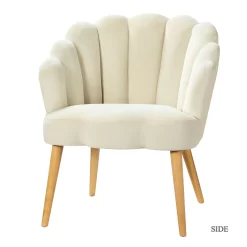 JAYDEN CREATION Flora Ivory Scalloped Velvet Arm Chair