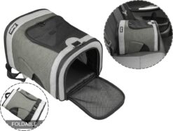 - Backpack carrier designed to keep your furry friend safe when traveling.