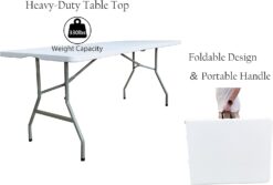 - 【Foldable design】The 6 ft table can be folded and with a convenient carrying handle, easily at home or in the car without having to assemble, easy to carry