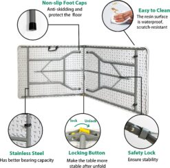 JingPieCle 6 foot folding table is made from high-quality HDPE and rust-proof powder-coated steel frame, so It’s sturdy.