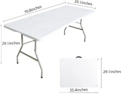 - 【Expanded dimensions】70.9″(L) x 29.1″(W) x 29.1″(H); Folded dimensions: 35.4″(L) x 29.1″(W); Maximum Weight Capacity: 330 LB; Item Weight: 22.7 LB, JingPieCle’s 6ft folding table have foot protective caps to protect the floor from scratches