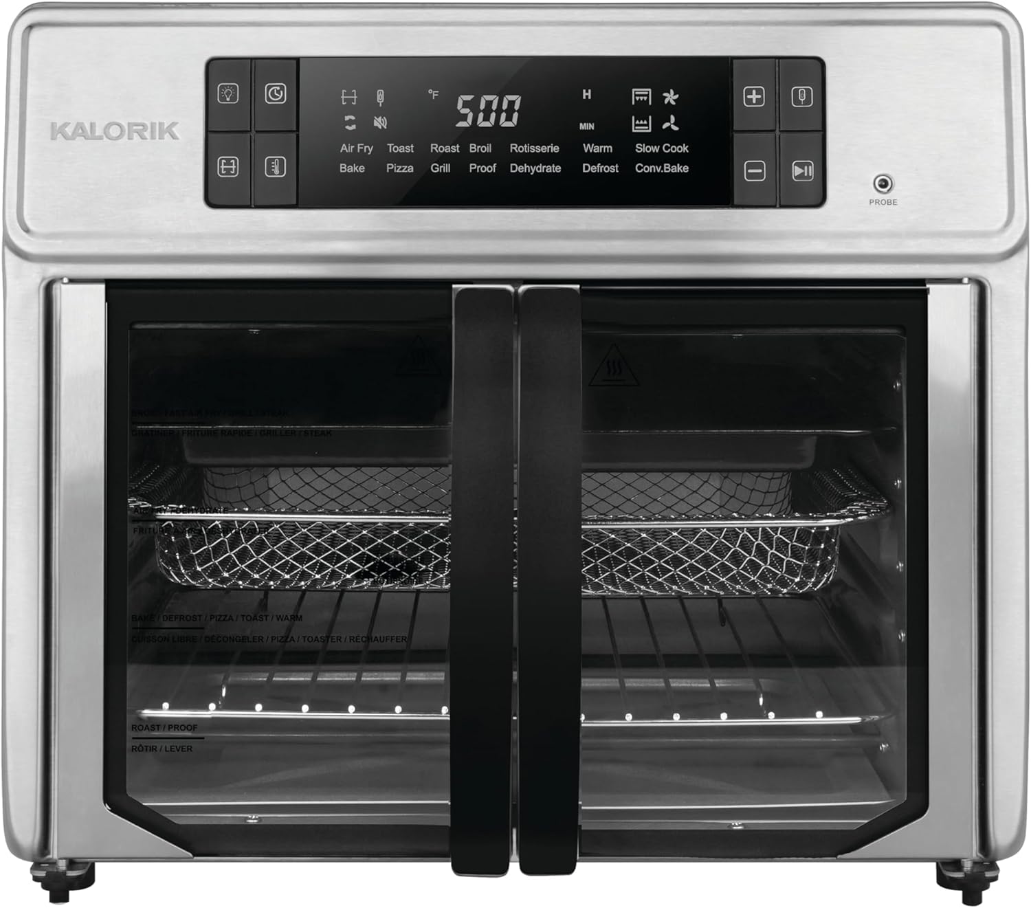 Kalorik Air Fryer Oven MAXX Advance Series 26-Quart with Digital Controls Easy-View Door and 14 Smart Cooking Presets, Includes 9 Cooking Accessories & Smart Probe, 1700-Watts, Black
