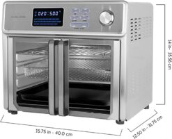 Discover the new generation of air fryer ovens! The Kalorik 26 Quart digital max air fryer oven combines 10 appliances into one. It functions as an air fryer, roaster, broiler, rotisserie, dehydrator, oven, toaster, pizza oven, and slow cooker. The Kalorik digital max air fryer oven uses special turbo max technology to cook food faster than ever. Upper and lower heating elements provide even heat distribution for perfectly-cooked results. An optimized airflow system and high-performance turbo fan are engineered for maximum circulation, delivering the same crispy texture and rich flavor of deep fried food, with little to no oil. This reduces fat and calories for healthier meals. The unique rotisserie setting rotates the included spit accessory during cooking, allowing meat to roast evenly in its own juices and develop maximum flavor. The Kalorik digital max air fryer oven reaches up to 500°F, perfect for searing meat or vegetables to caramelized perfection. The oven can fit a large chicken, 12” pizza, or up to 9 slices of toast in its cavity. Modern and multi functional, the Kalorik digital maximizer fryer oven features glass French doors with single-hand opening to prevent dripping or scalding. A built-in auto-shutoff safety feature automatically stops operation when doors are open. An easy-to-use digital LED display contains 21 presets for foolproof cooking.
