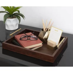 Kate and Laurel 12.25-in x 16-in Walnut Brown Decorative Tray