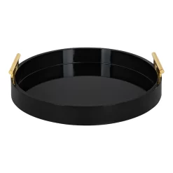 - DECORATIVE TRAY: Decorative circular-shaped contemporary tray with polished metal handles will be an elegant accent in your home