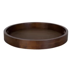 Place this beautiful Decorative tray on your coffee table to showcase a vase of flowers or on your dining table as a centerpiece. The handles are built into the sides, so it’s easy to use as a stylish serving try too! The display dimensions are approximately 18.25 inches round with 2.25-inch high sides that have large built-in handles.