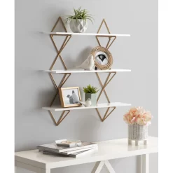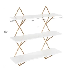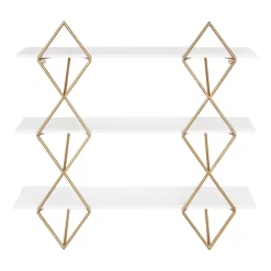 - MODERN GLAM DESIGN: The Islay Floating Wall Shelf features an elegant, interweaving frame with a gold finish, and each of the three wooden tiers have a lush white finish