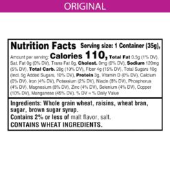 Whole Grain Wheat, Raisins, Wheat Bran, Sugar, Brown Sugar Syrup. Contains 2% Or Less Of Malt Flavor, Salt.