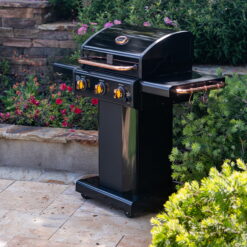 Kenmore 3-Burner Outdoor BBQ Propane Gas Grill with Foldable Sides, Black with Copper Accent